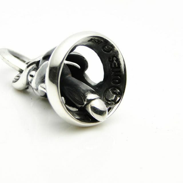 日本を象徴する鳥であるトキを意味するアイビス。2羽のトキが寄り添う様をデザインに落とし込んだ、ピースフルなベルペンダント。チェーンが通しやすい様に上部に鏡面仕上げのリングをセット。