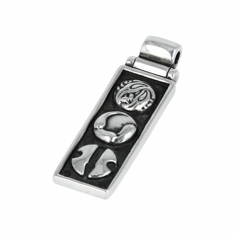 ロンワンズが放つ3つのコレクションそれぞれのロゴを組み合わせた、縦長デザインのペンダント。