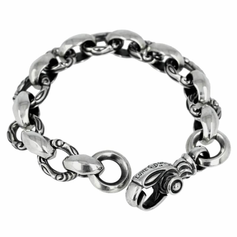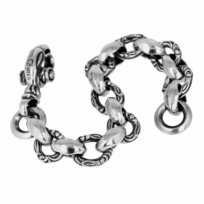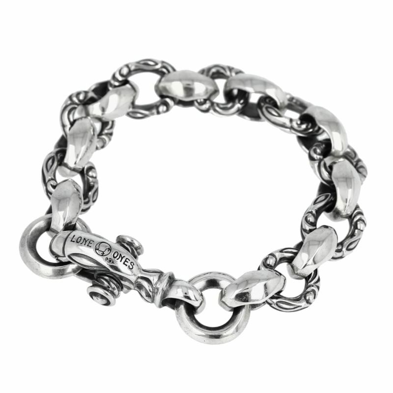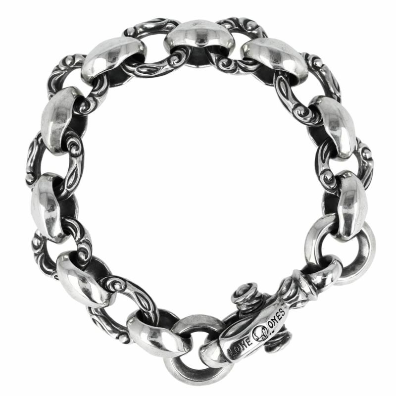 鷺をモチーフにしたブレスレット。プレーンなパーツと精密に彫金されたパーツとのコントラストで表現された美麗なアイテム。ロンワンズの代表的なデザインのブレスレットです。