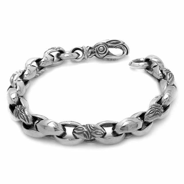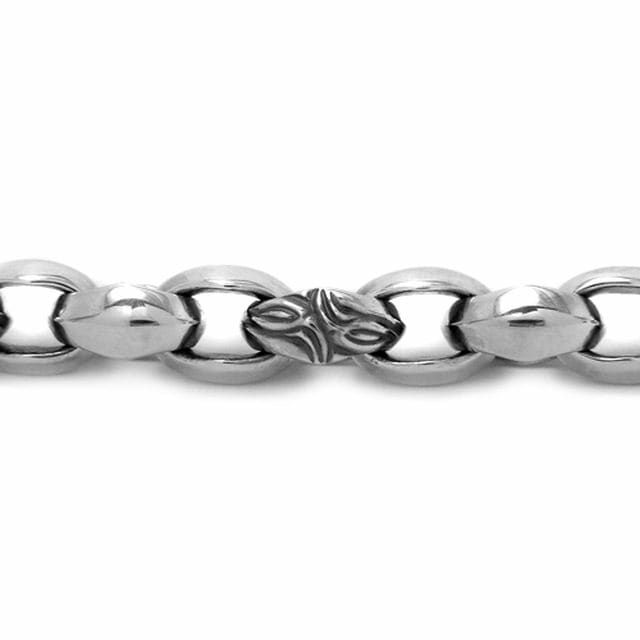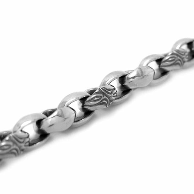シルクリンクパーツの煌びやかな輝きはそのままに、間に鳥のデザインの彫刻を施したリンクを繋げたブレスレット。どの角度から見ても妥協の無いデザインを楽しめる。