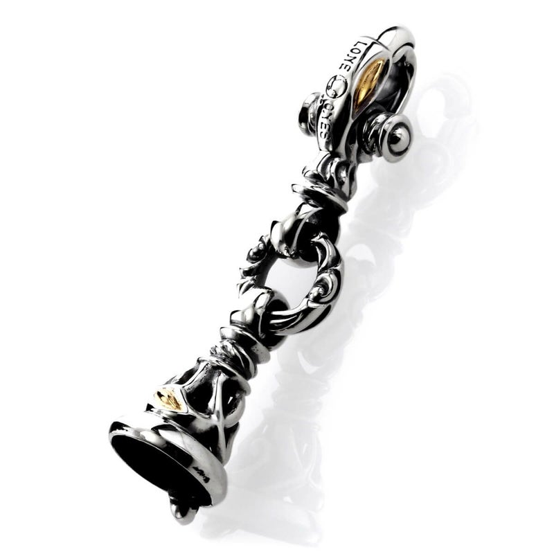 ブランドアイコンとも言えるクレーンベルをキークラスプ化。バッグやウォレット・車のキーなど身の回りの小物を彩ってくれる他、ペンダントトップとしても人気。部分的なイエローゴールドが作品の上品さをアップさせている。