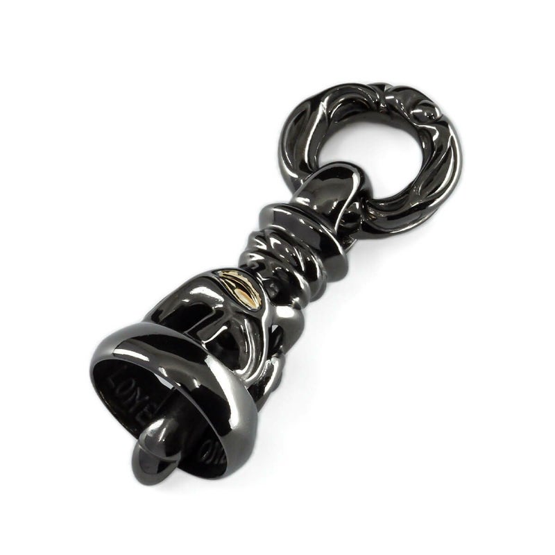 鳩をモチーフにしたベルペンダント。細部まで拘った造形美と独特の音色が特徴的な、ロンワンズを代表するペンダント。全体ブラックコートに目部分の素材をローズゴールドにする事でメリハリと高級感をプラス。
