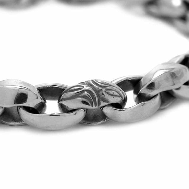 シルクリンクパーツの煌びやかな輝きはそのままに、間に鳥のデザインの彫刻を施したリンクを繋げたブレスレット。どの角度から見ても妥協の無いデザインを楽しめる。