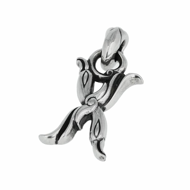 アルファベットをブランド独自の観点でデザインした作品。鳥のモチーフが字体に絶妙な溶け込んでいる。自分の名前や大切な人の名前・お好きな言葉の頭文字など選び方は自由。ペア着けもおススメ。