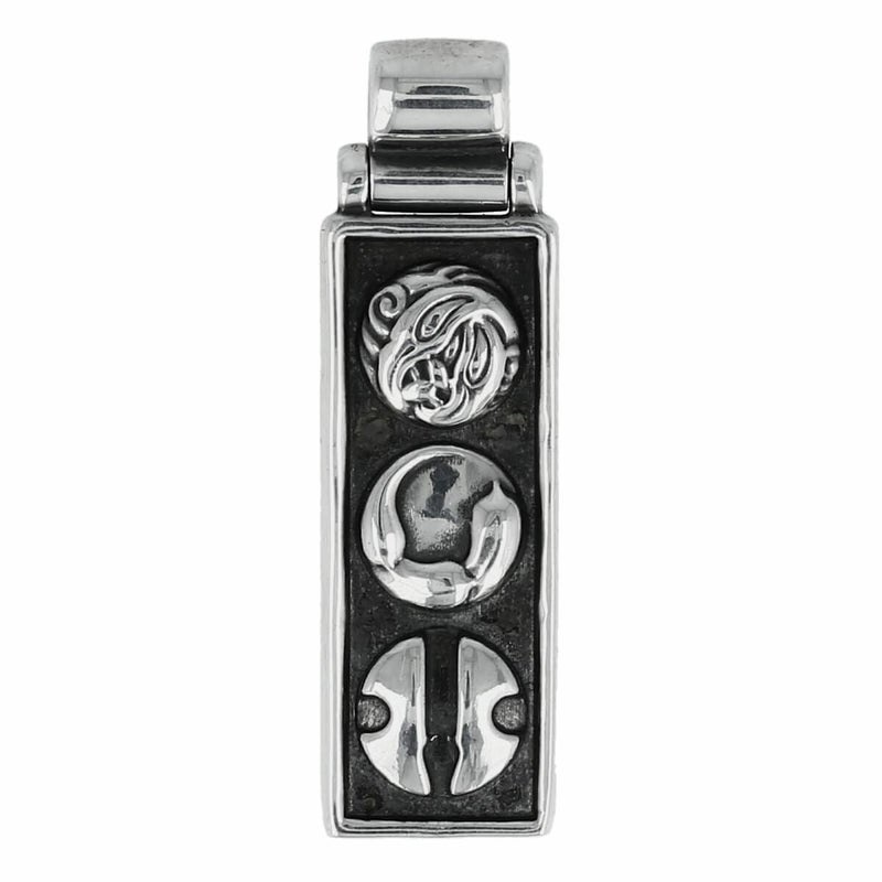 ロンワンズが放つ3つのコレクションそれぞれのロゴを組み合わせた、縦長デザインのペンダント。