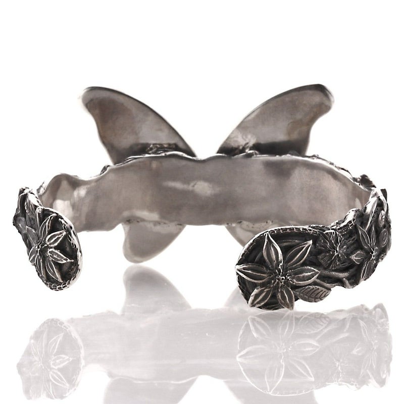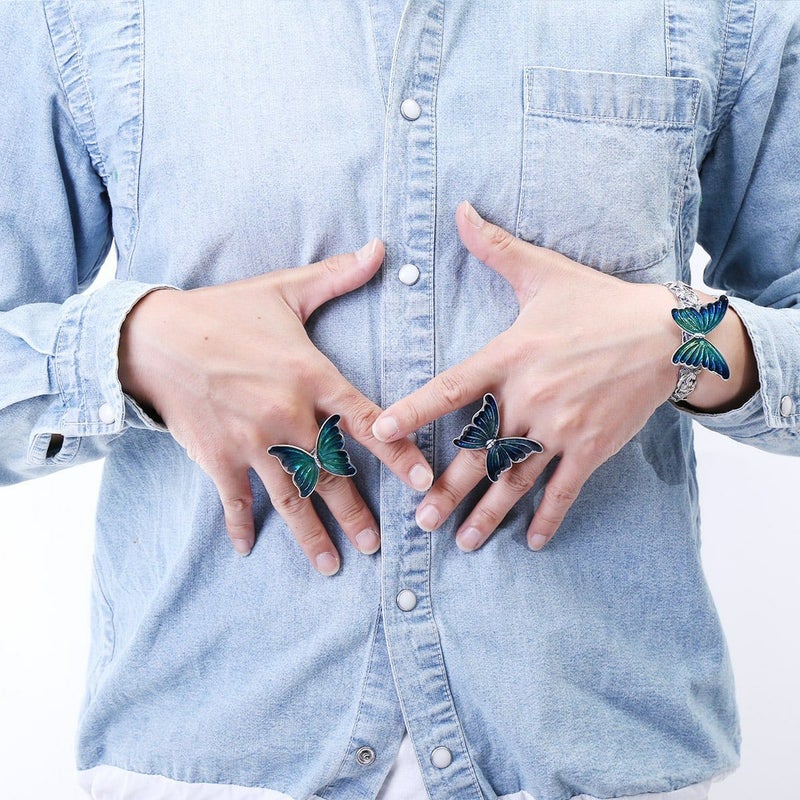 ブレスレットにモルフォ蝶がとまったようなデザインのバングル。