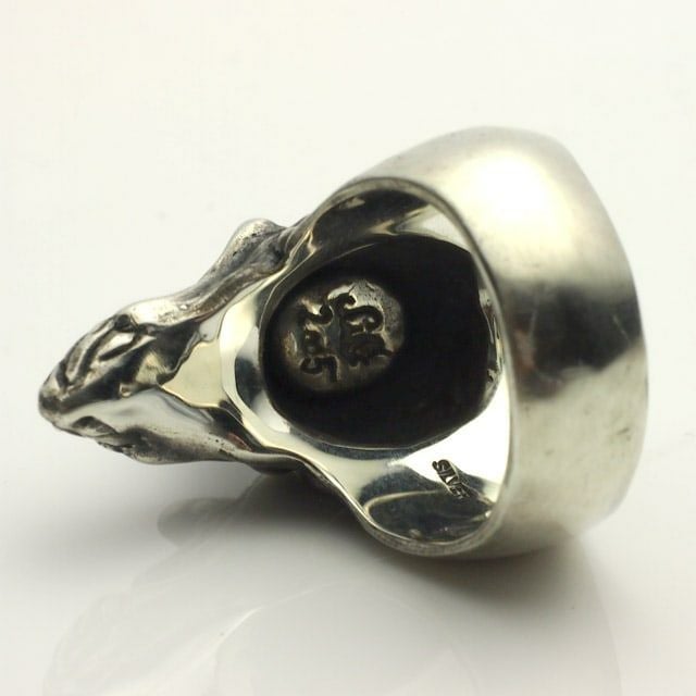 サタン(悪魔)をモチーフにしたリング。上下左右どの角度から見てもリアルに仕上げている。細かい彫金技術に注目のアイテム。