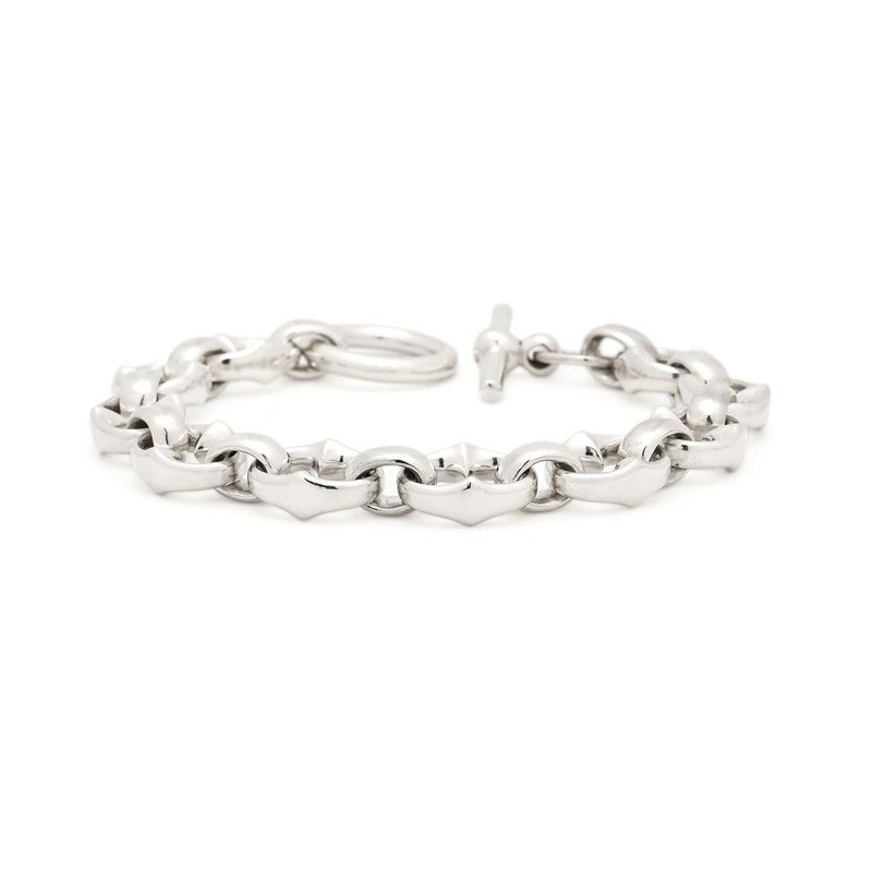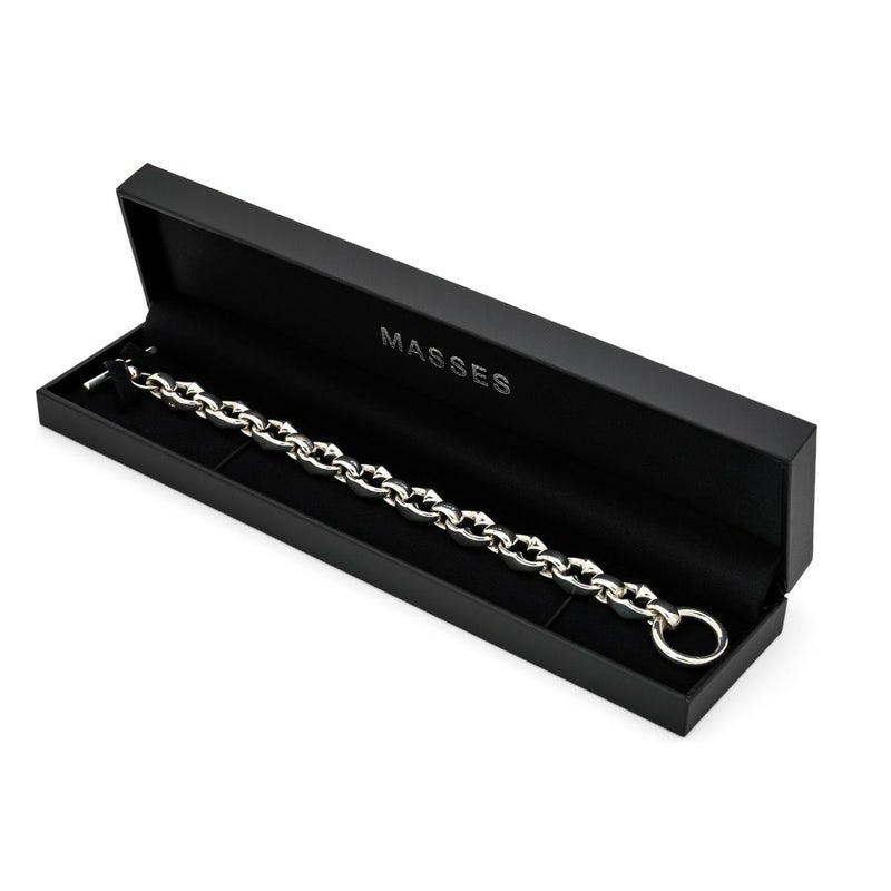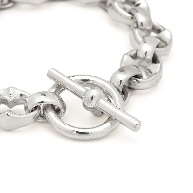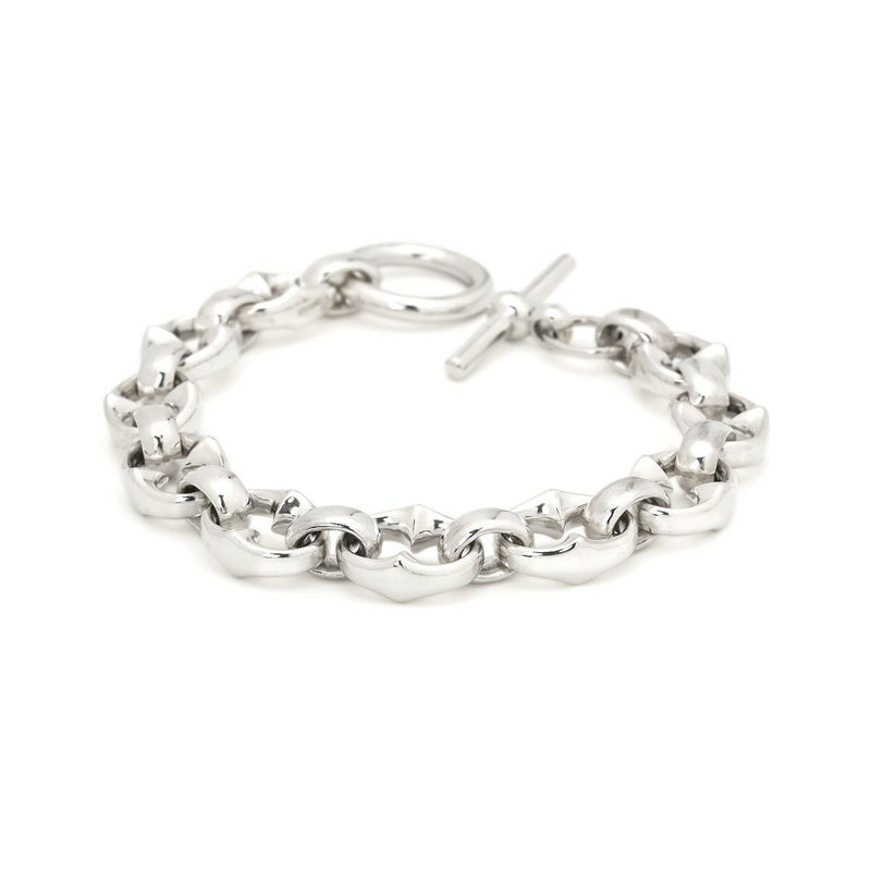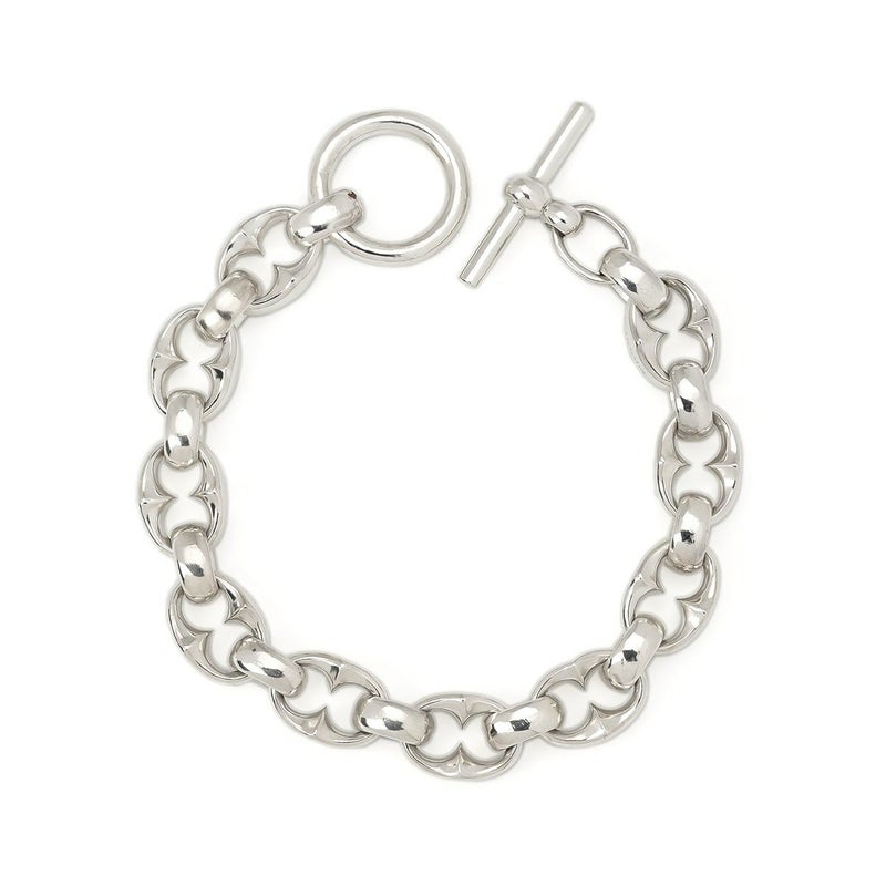 オリジナルで作成したコマを2連のリングで接続した、非常に手の込んだ仕様のブレスレット。