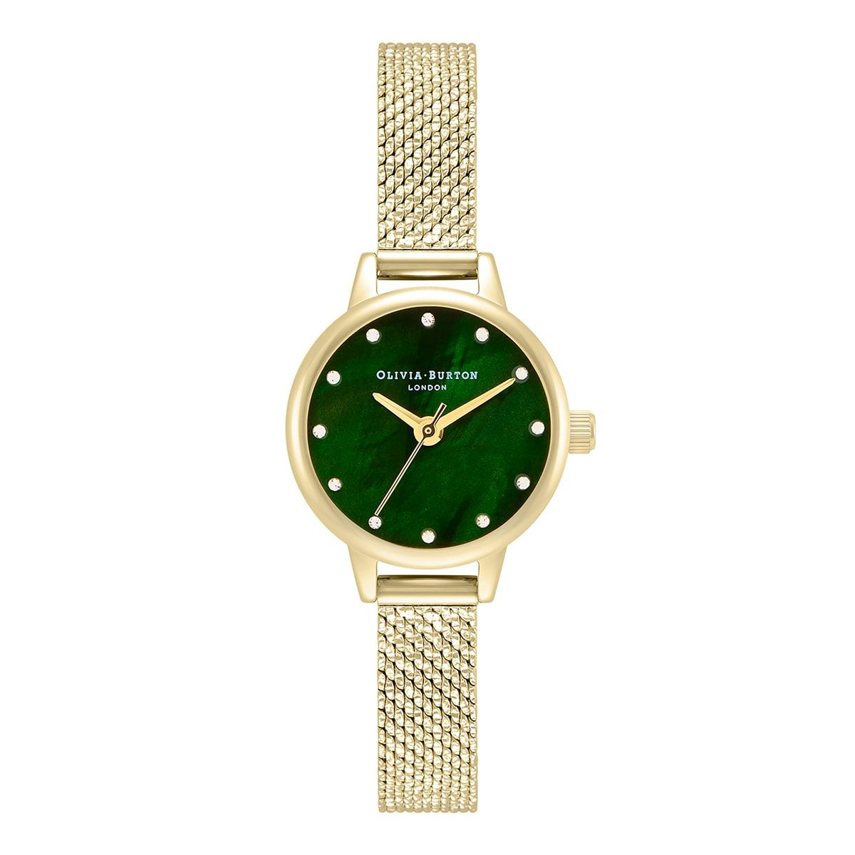 【ギフトセット】オリビア・バートン クラシックス - ミニ ダイヤル グリーン マザーオブパール ゴールドブークレメッシュ & レインボーチャームブレスレット