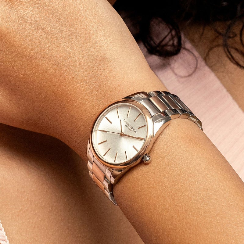 オリビア・バートン クラシック - 34mm グロウフル ホワイト&シルバー ローズゴールド