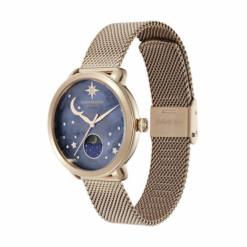 オリビア・バートン セレスティアル - 34mm ムーンフェイズ ネイビー&ローズゴールドメッシュ
