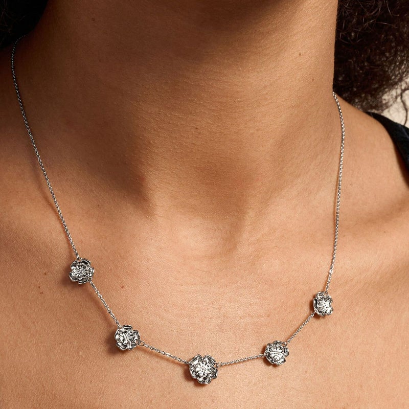 オリビア・バートン シグネチャー - チューダー ローズ シルバー マルチステーション ネックレス