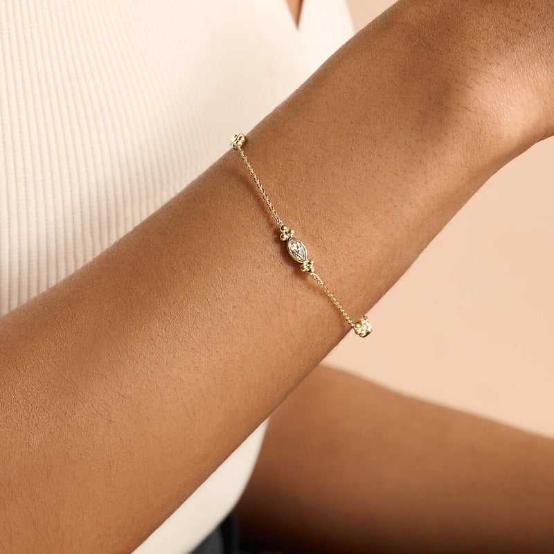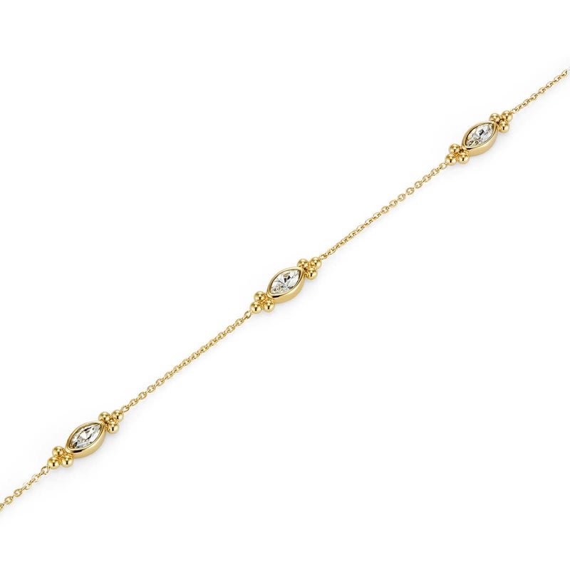 繊細なキャビア・ビーズとエレガントなマーキスカットクリスタルを組み合わせたヴィンテージ風のネックレス、ブレスレット、ピアスが登場。シルバー、ゴールド、ローズゴールドの3色展開で、時計とのコーディネートが楽しめる美しい輝きが魅力です。