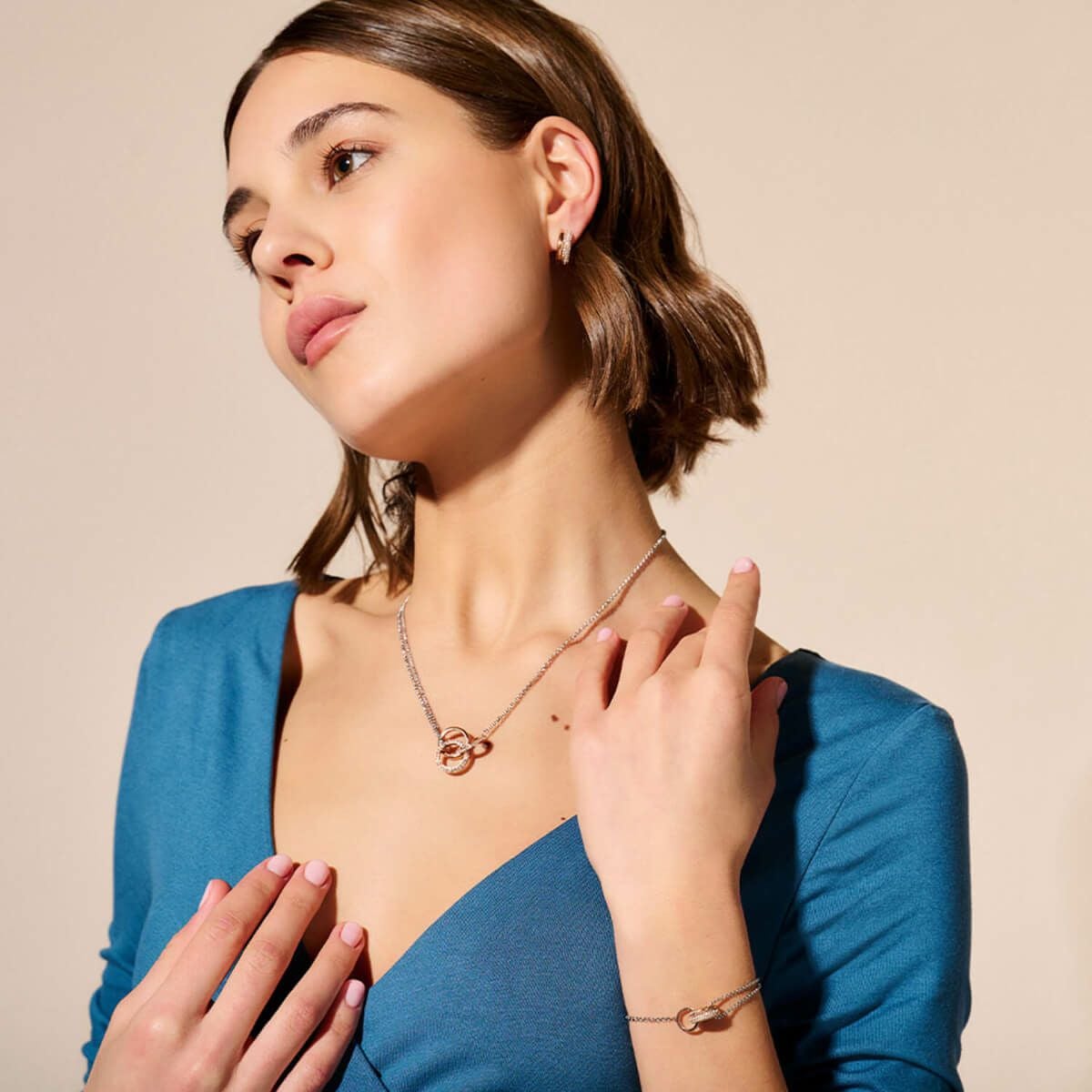 オリビア・バートン クラシック - エントワイン シルバー & ローズゴールド ブレスレット