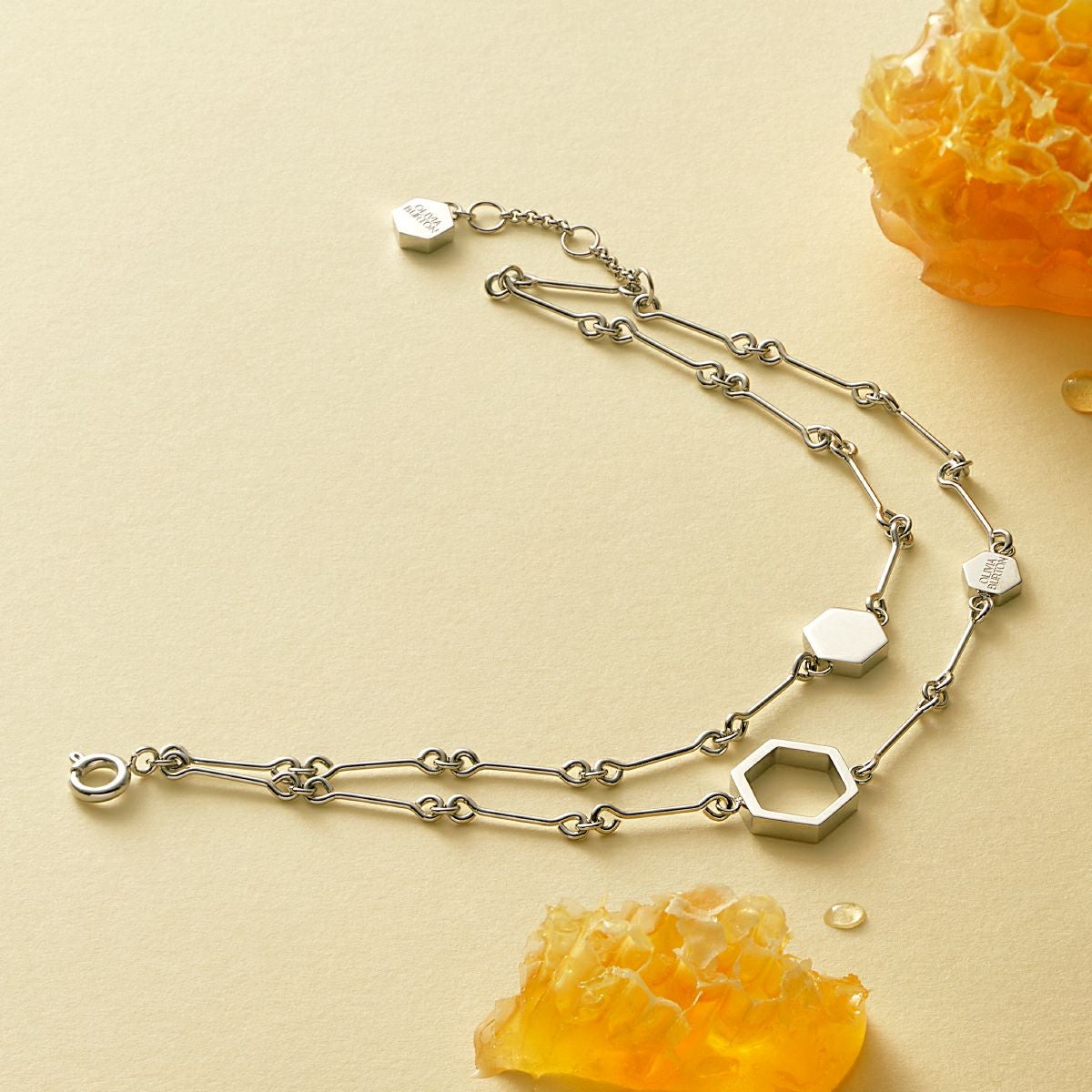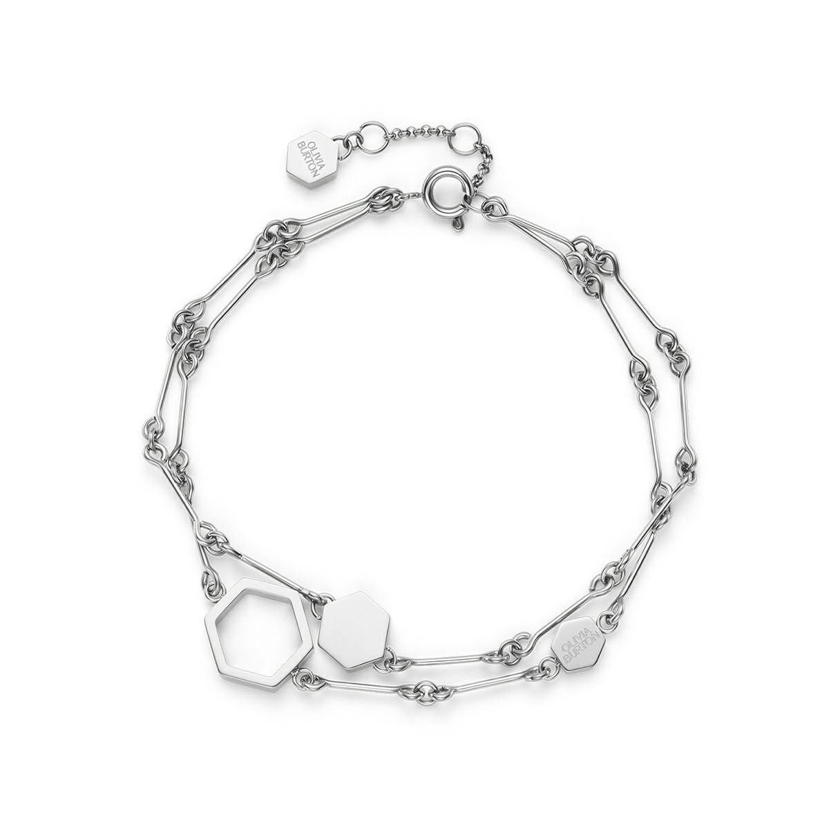 オリビア・バートン シグネチャー - ハニカム クラシック ダブル チェーン シルバー ブレスレット