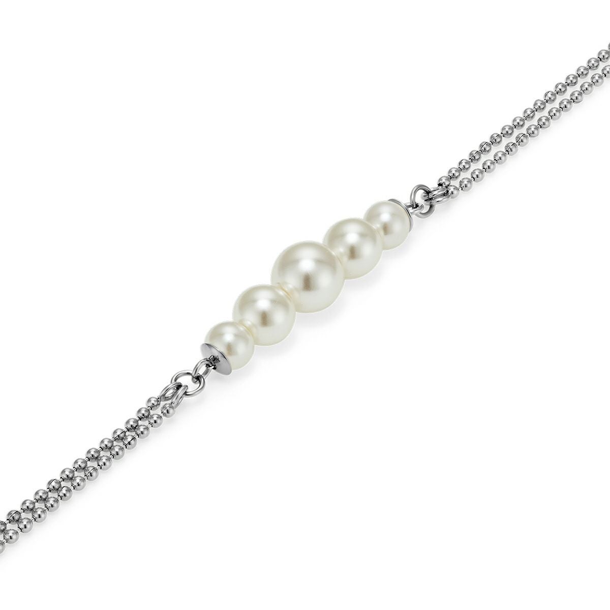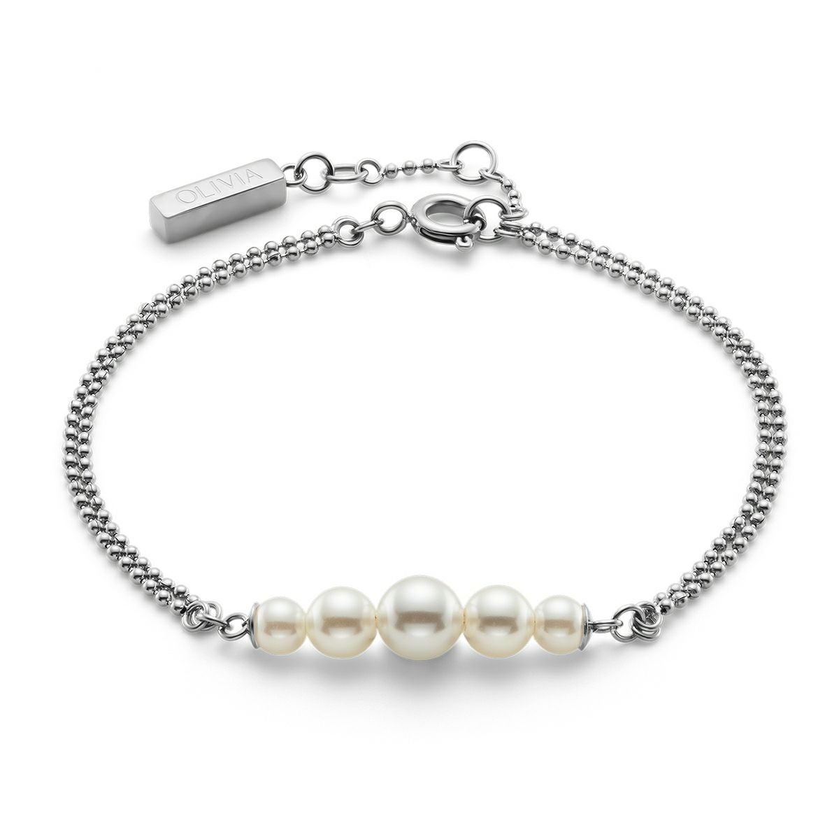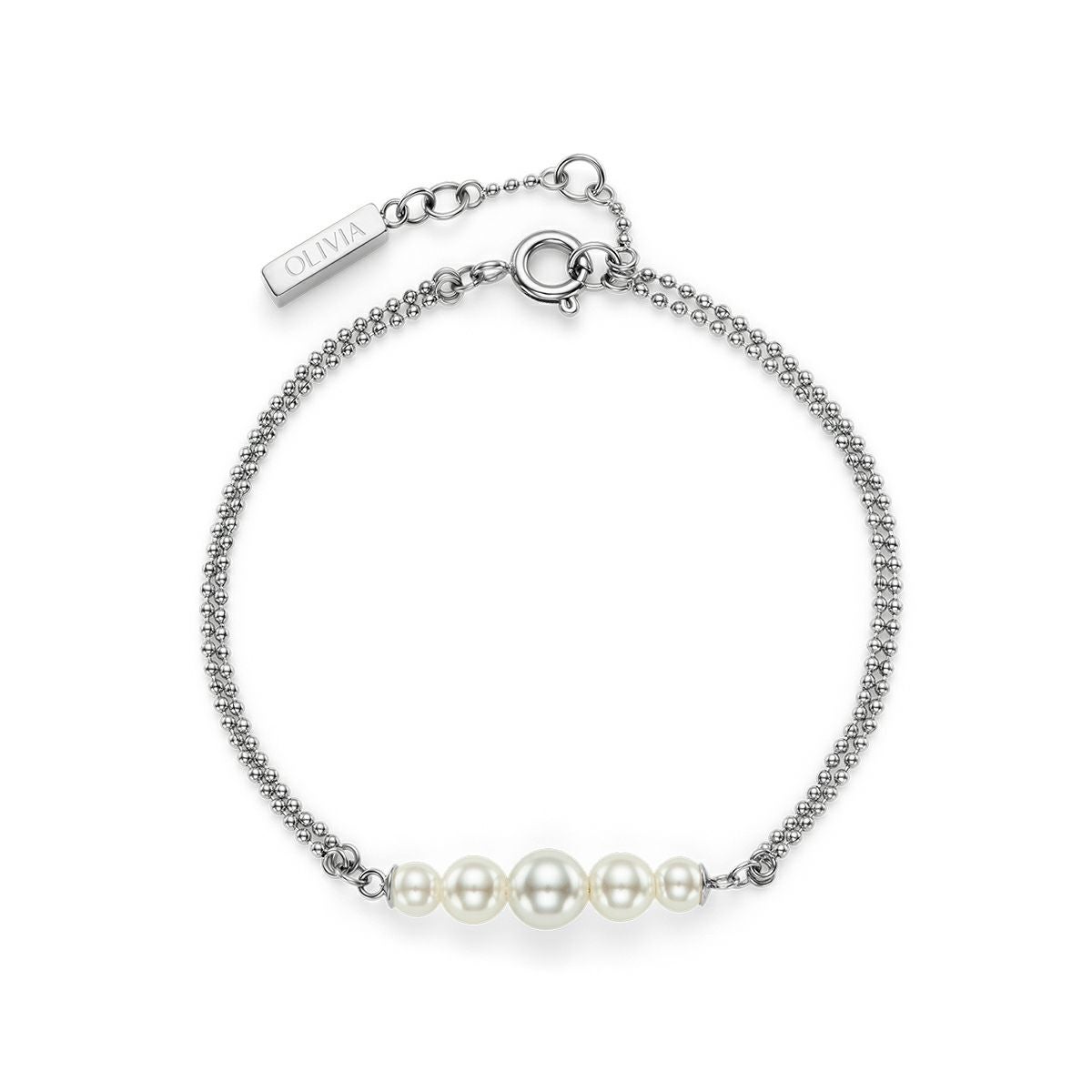 オリビア・バートン クラシック - パール&ビーズ パール ダブル ロー ボール シルバー ブレスレット