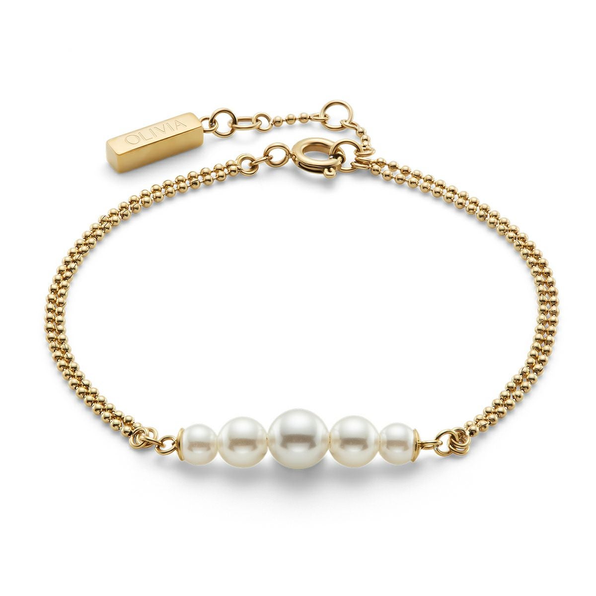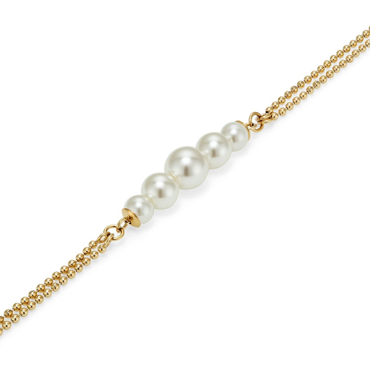 オリビア・バートン クラシック - パール&ビーズ パール ダブル ロー ボール ゴールド ブレスレット