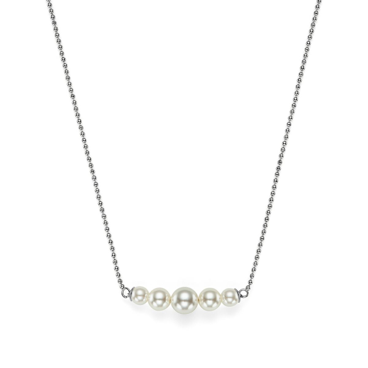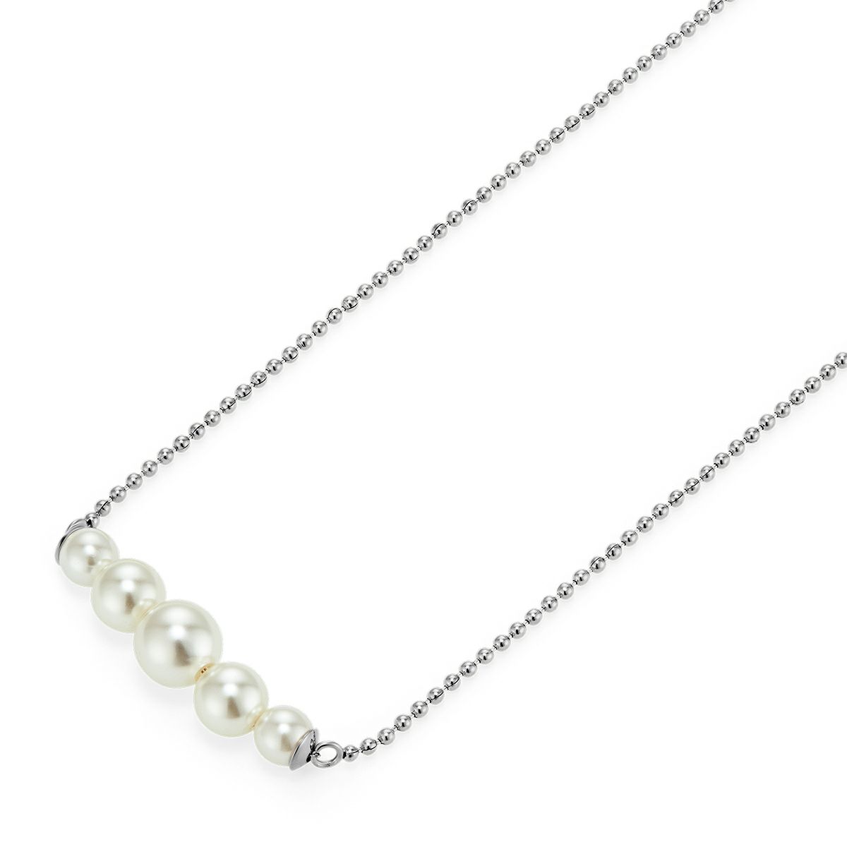 ネックレスは、グラデーションのパールがスリムなチェーンに並ぶデザイン。