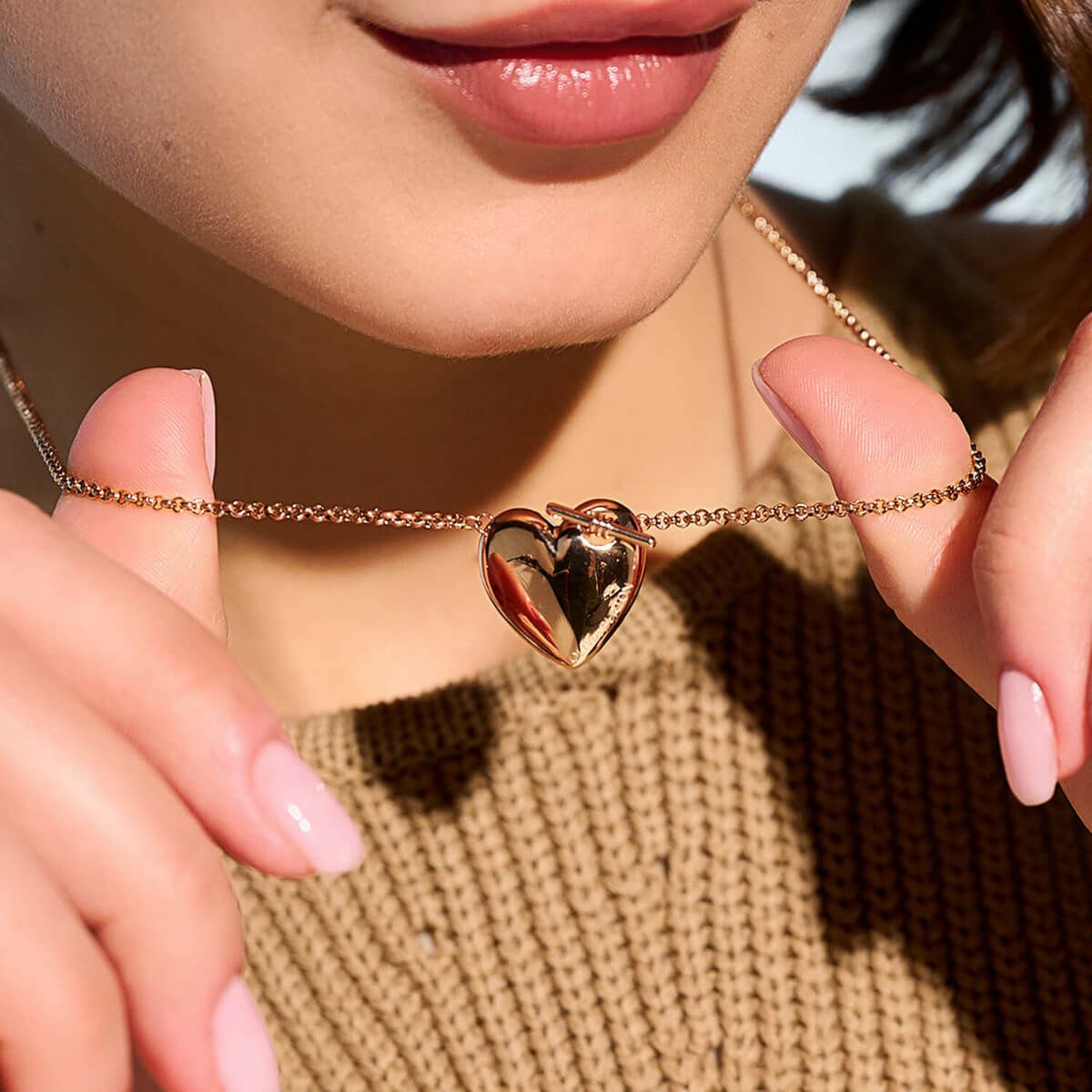 オリビア・バートン クラシック - ノット ハート ローズゴールド ネックレス