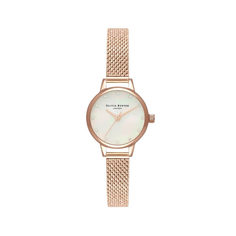 オリビア・バートン クラシックス - ミニ ホワイトマザーオブパール&スパークルマーカー/ローズゴールドブークルメッシュ