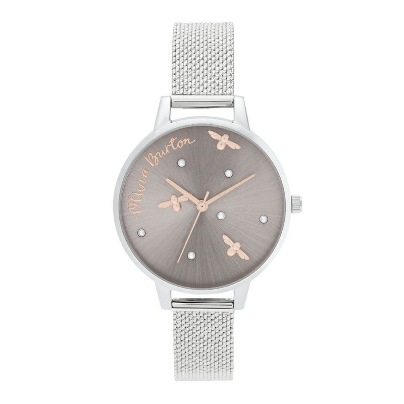 働き蜂からインスパイアされ、その可愛らしい小さな蜂たちとパールをダイヤルに装飾した、上品でフェミニンなデザイン。パールと蜂が文字盤の上で動き回る姿を表現しています。新しく採用した筆記体のブランドロゴも今までにない女性らしいデザインに。