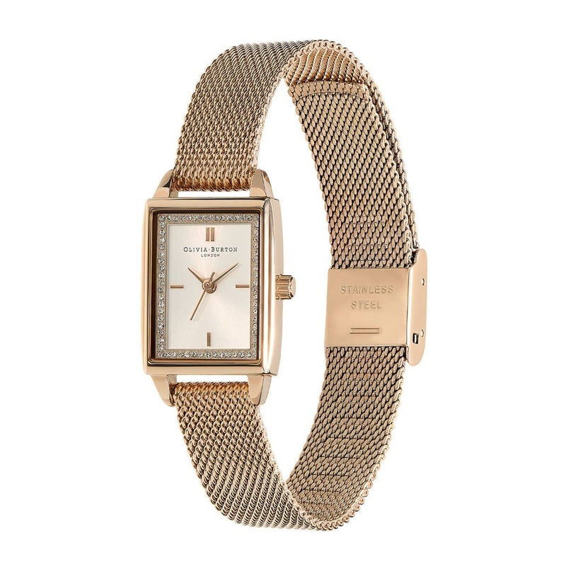 オリビア・バートン タウンハウス - 21mm レクタングル ホワイト & カーネーションゴールドメッシュ