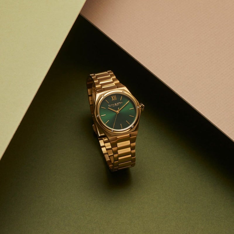 オリビア・バートン スポーツ リュクス - 33mm ヘキサ グリーン ゴールド ブレスレット ウォッチ