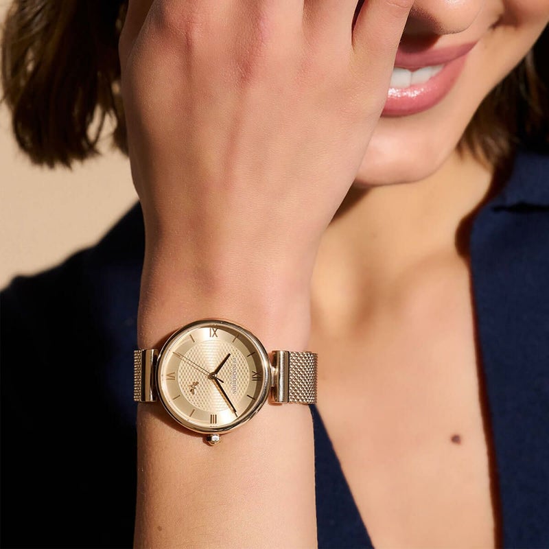 オリビア・バートン シグネチャー - 36mm ミニマ ビー T バー カーネーション ゴールド メッシュ ウォッチ