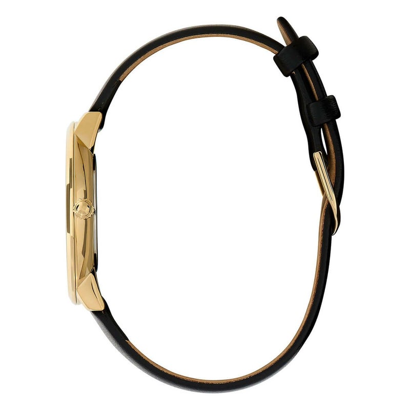 オリビア・バートン シグネチャー - 35mm フローラル ブルーム ウルトラスリム ゴールド & ブラック レザーストラップ ウォッチ