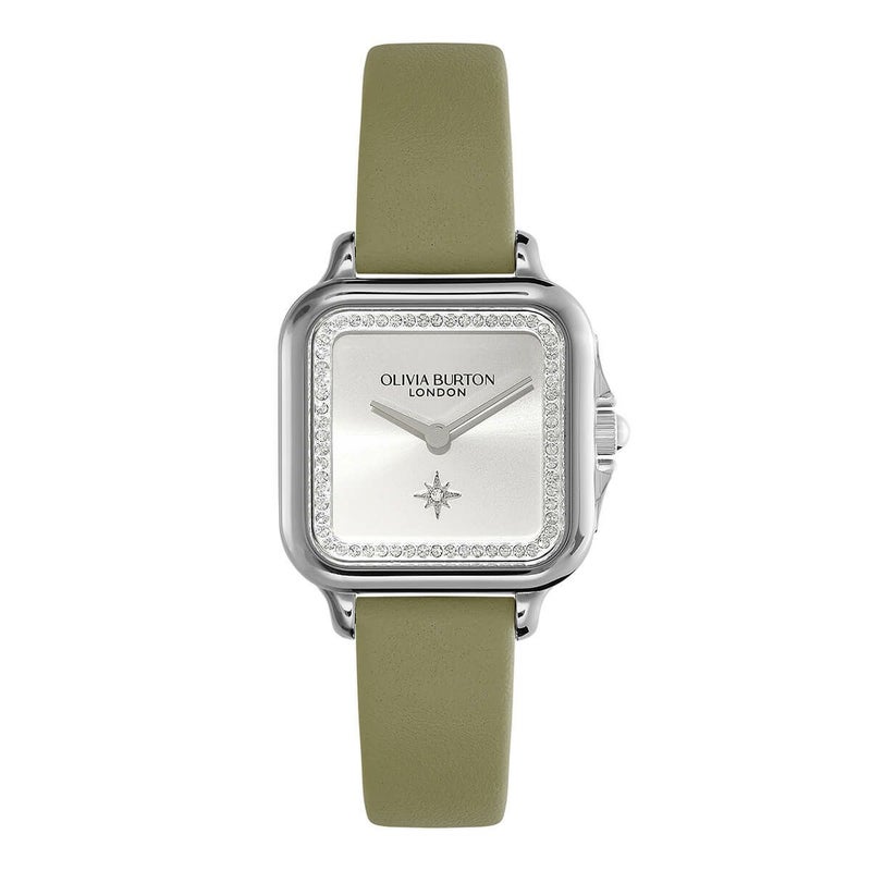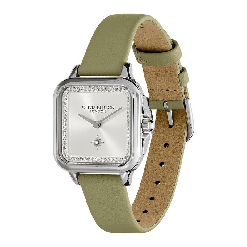 オリビア・バートン クラシック - 28mm グロブナー クリスタル シルバー サンレイ セージ レザー