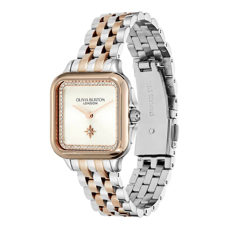 オリビア・バートン クラシックス - 28mm グロブナー クリスタル シルバー ホワイト サンレイ シルバー ローズゴールド ブレスレット