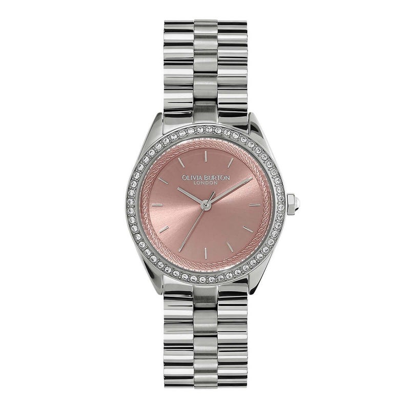 オリビア・バートン スポーツ リュクス - 34mm ビージュエルド クリスタル メロウローズ サンレイ シルバー ブレスレット
