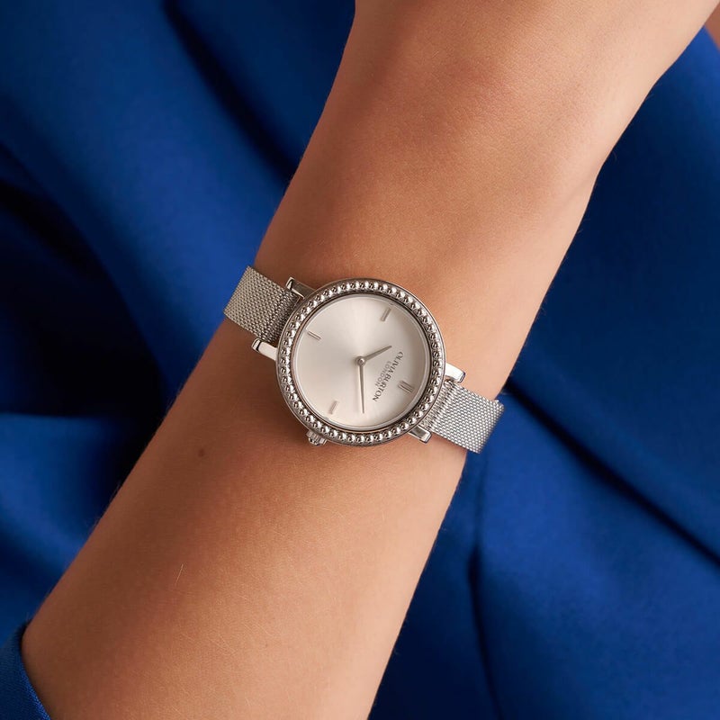 オリビア・バートン クラシックス - 30mm ヴィンテージ ビーズ シルバー ホワイト サンレイ メッシュ