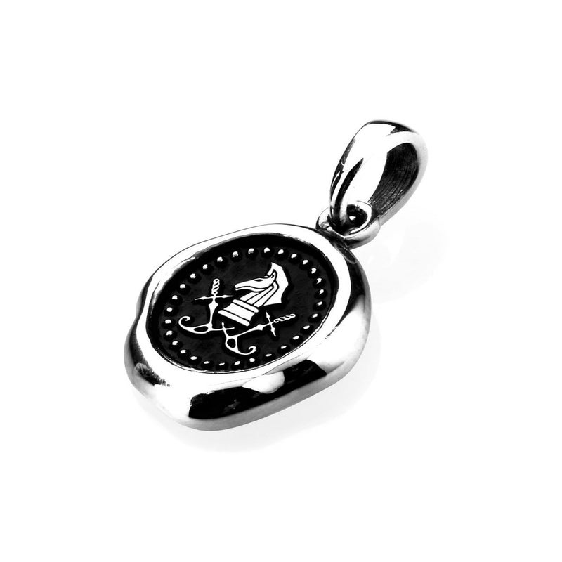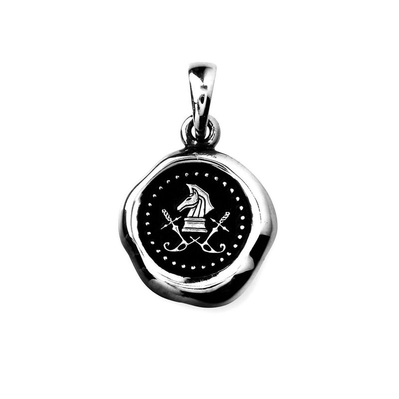 シーリングスタンプをモチーフにしたペンダント。細かいディティール、陰影ををリアルに再現したアイテム。カジュアルに、クラシックなワンポイントに多用できる。