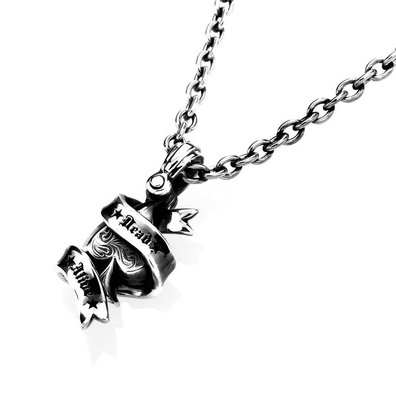 トライバル柄が刻まれたスペードにリボンが巻き付いたペンダント。 リボンには表裏でメッセージが刻まれており、ある種の言葉遊びになっている。 -刻印- 表 「Dead」 「Alive」 裏 「Pray」 「Justice」