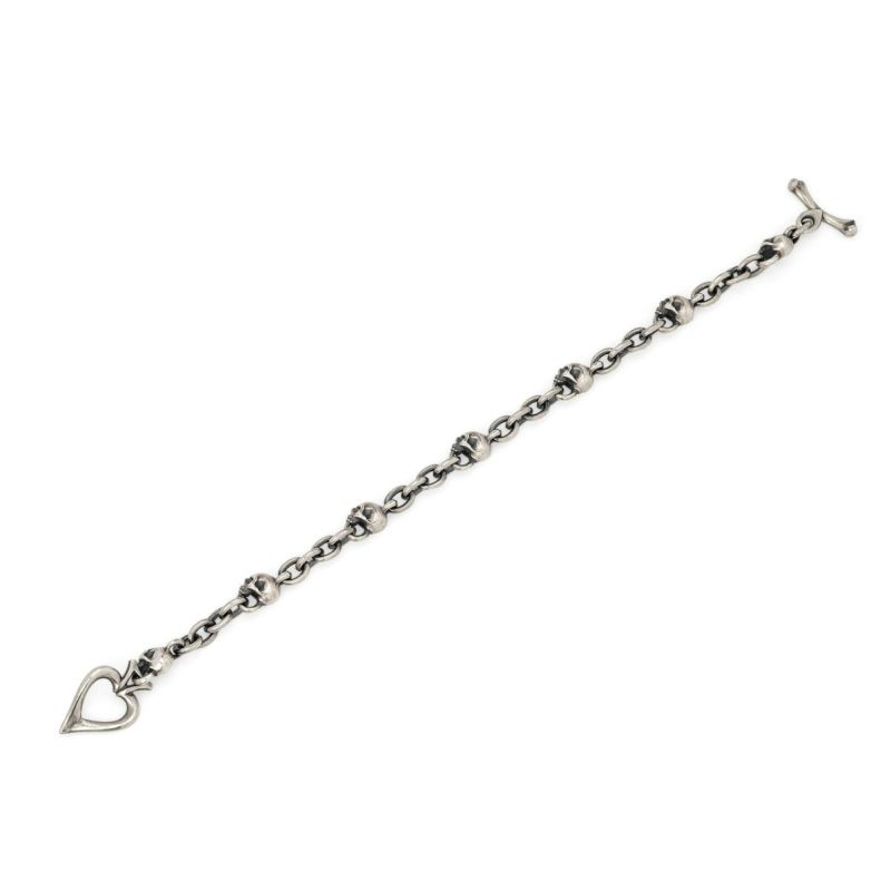 新型のビーズスカルにチェーンを組み合わせた細身のブレスレット。