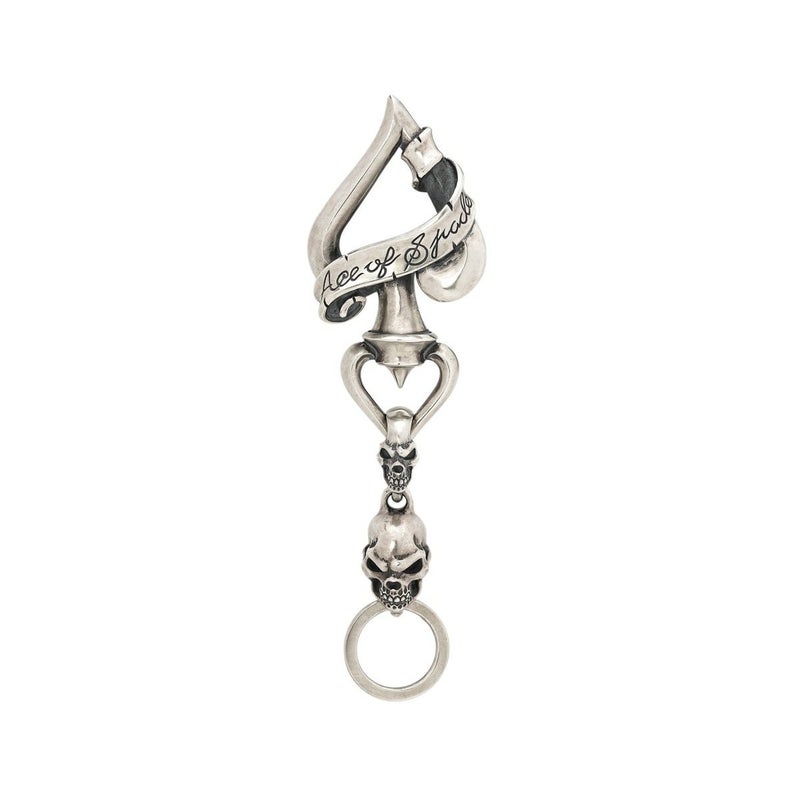 「Ace of Spade」と刻まれたリボンとスペードを組み合わせたキーチェーン。