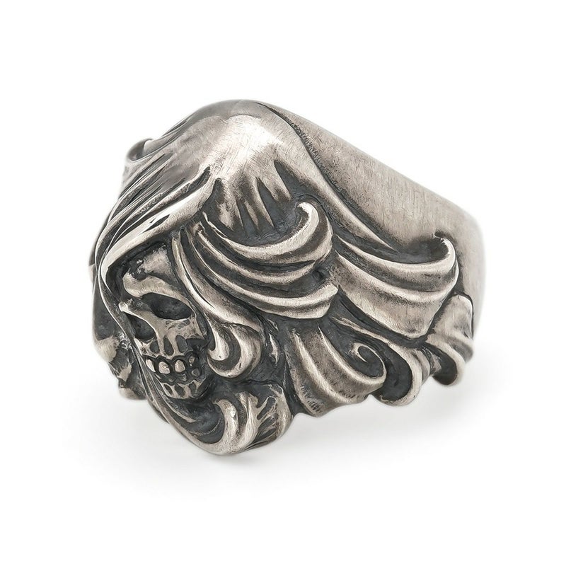 滑らかな曲線とスカルの構図が絶妙なリング。