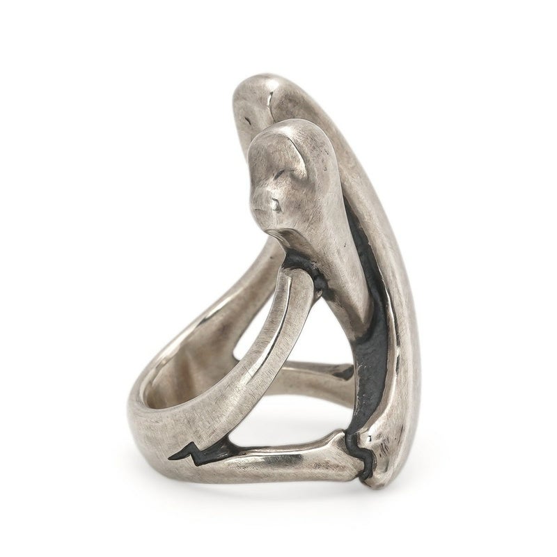 装着時に中手骨側の関節にかかるほど、リング上部が上に伸びたフォルムは無骨さを強く感じさせる半面、ラットレース特有の流れるような曲線がより映える絶妙なストラクチャーとなっている。