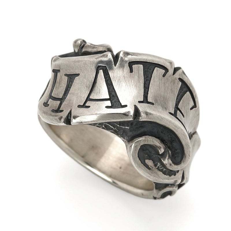 『愛と憎しみは表裏一体』を表現し、リング表側にはHATE(嫌い)、リング内側にはLOVE(好き)を刻む。