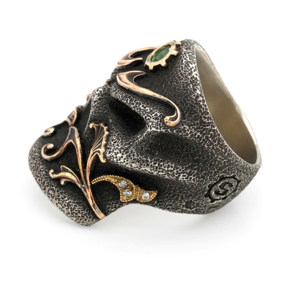 【限定&カスタム】 スターリンギア パンチャーステルスリング w/18kギア/ブラスアンティークパーツ/マレーシア産グリーンガーネット&ホワイトダイヤモンド/テクスチャー 【リングサイズUS11(日本サイズ24号)】