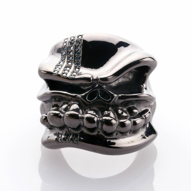 スターリンギア パンチャーニューブルーザーリング ブラック w/ライト2ラインブルーダイヤモンドパヴェ
