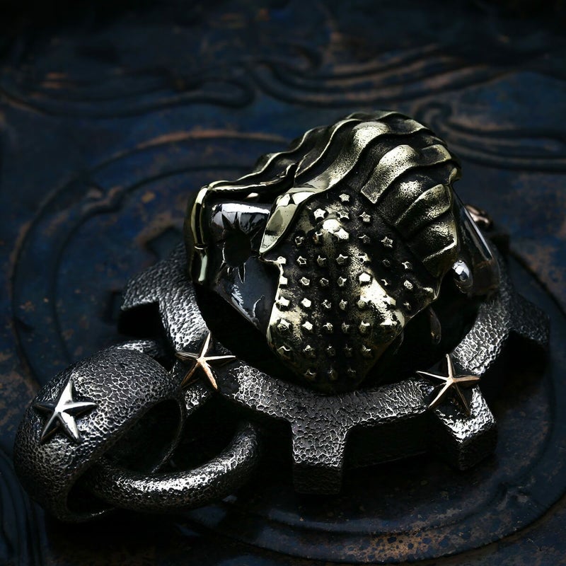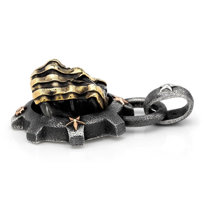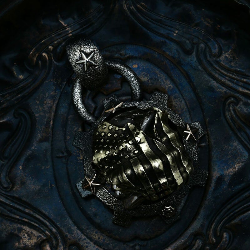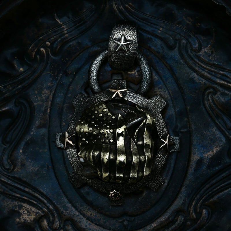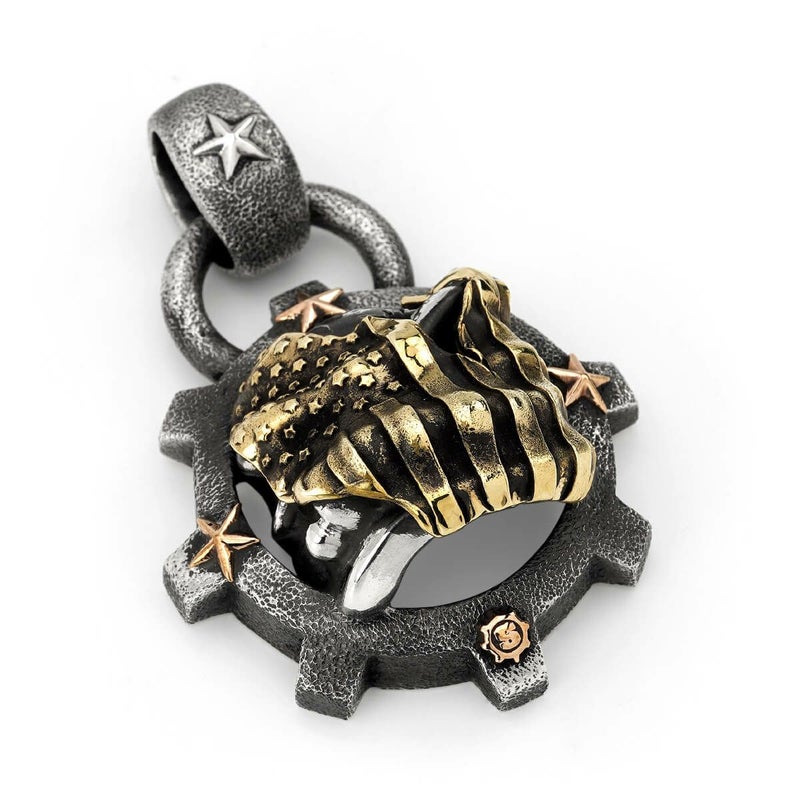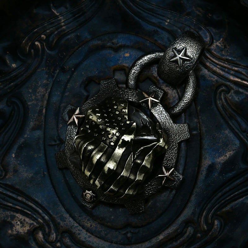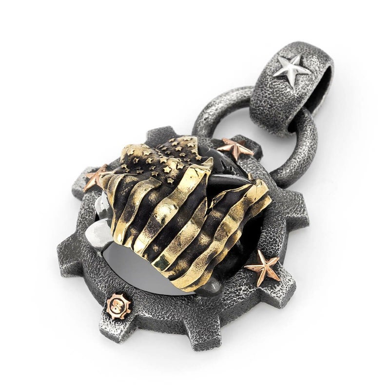【カスタム】 スターリンギア パンチャーニューブルーザーフェイスギアペンダント w/フラッグフェイス/ブラスアメリカンフラッグ/弾痕/シルバー1スター/コパー3スター&Sギアロゴ/テクスチャー