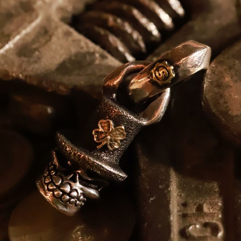 マイクロダンテに18金イエローゴールドのクロバーと22金イエローゴールドのSギアロゴを贅沢に搭載!ハットにテクスチャーを施すことでゴールドを際立たせる。
