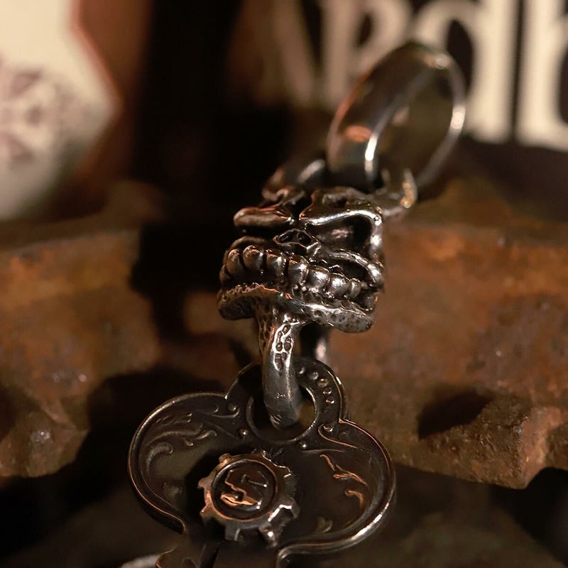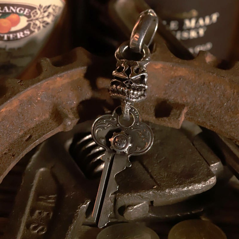 本物のカギ(アンティーク)をエンドパーツにアタッチメントしたペンダント。同じ形のカギは2個とない。