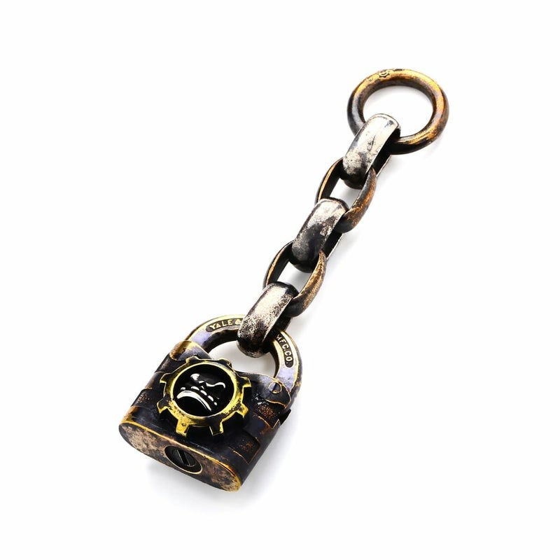 アンティークであるパドロックキーを大胆にウォレットハンガーキーチェーンとして使用。異素材のコンビネーションがアンティーク独特の雰囲気を損なわないように表現している。