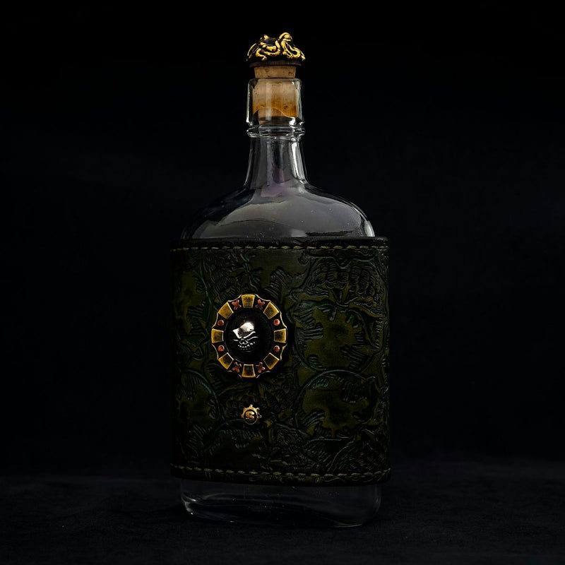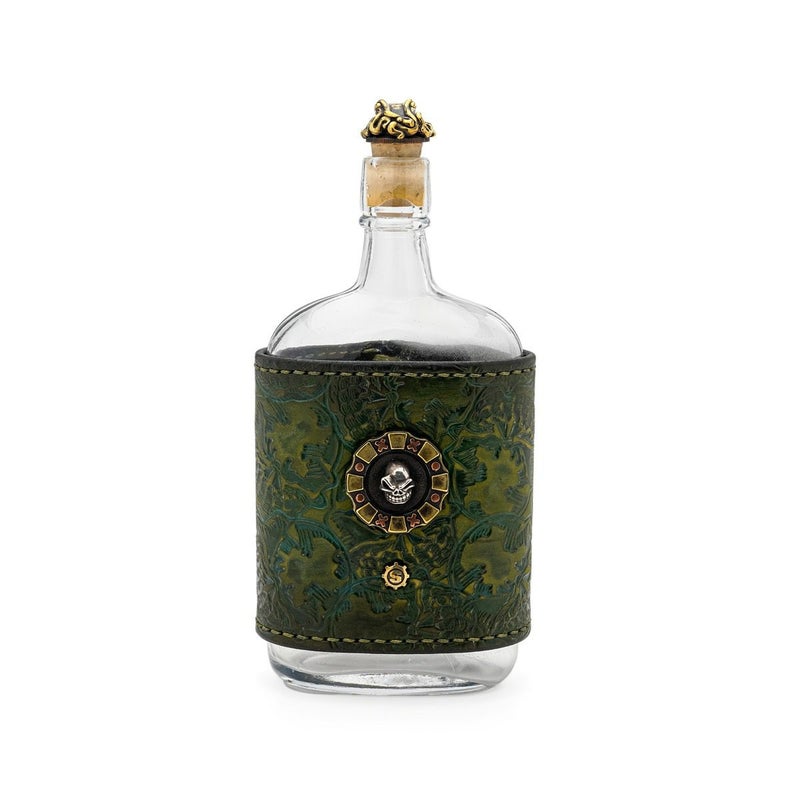 【限定】 スターリンギア 1920年製オリジナルガラスボトル w/シルバースカル/ブラステンタクル&ポーカーチップ&Sギアロゴ/グリーンレザーエンボス