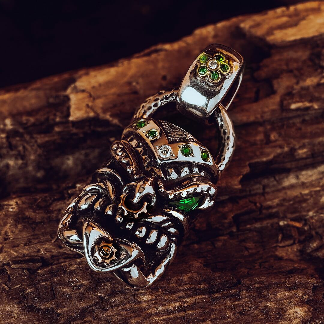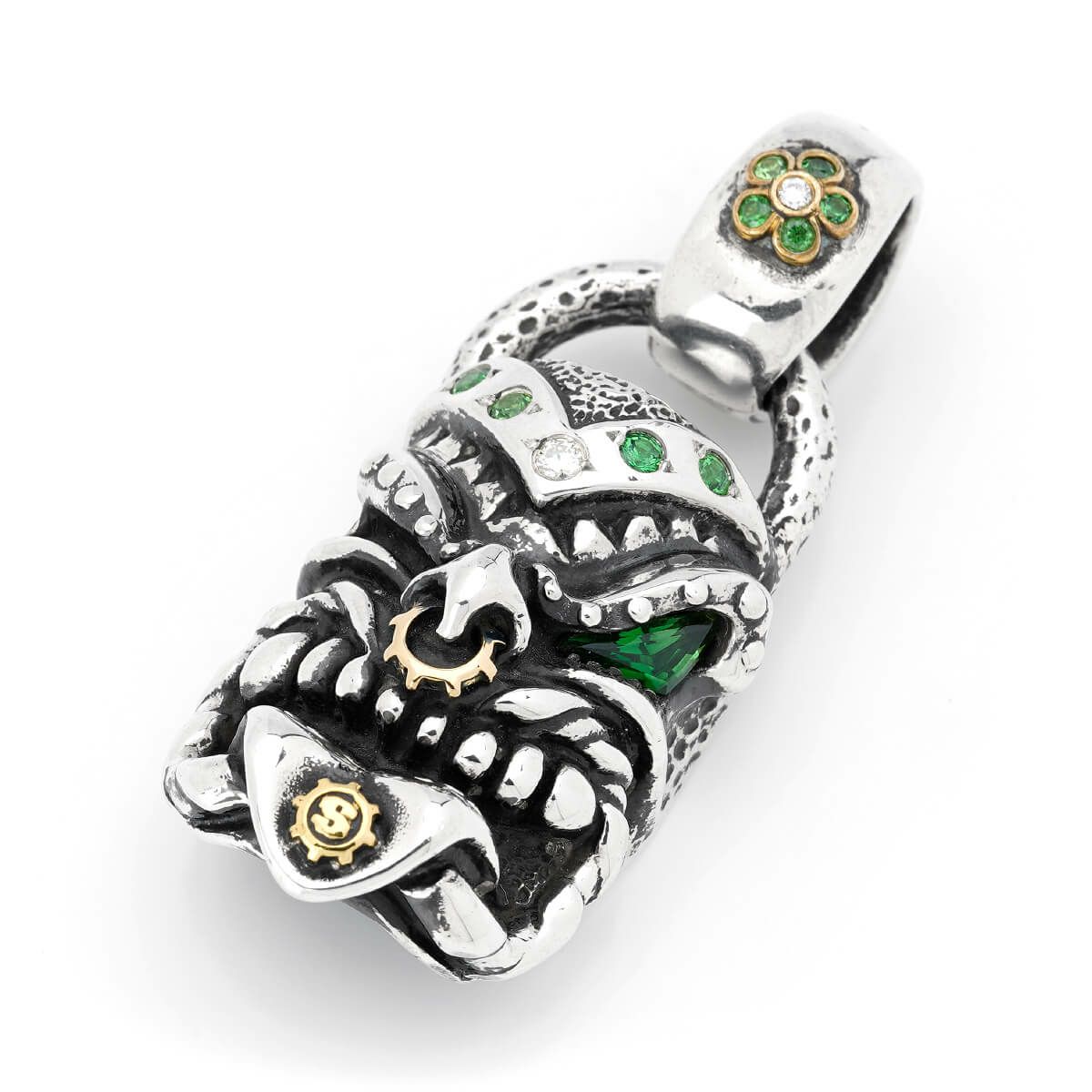 他の画像を見る カートに入れる 【限定&カスタム】 スターリンギア パンチャーニューマオリフェイスペンダント w/22kゴールドギア/18kイエローゴールドSギアロゴ&アンティークパーツ/スペシャルカットクロームトルマリン&2ダイヤモンド&9サボライト ¥ 803,000 税込