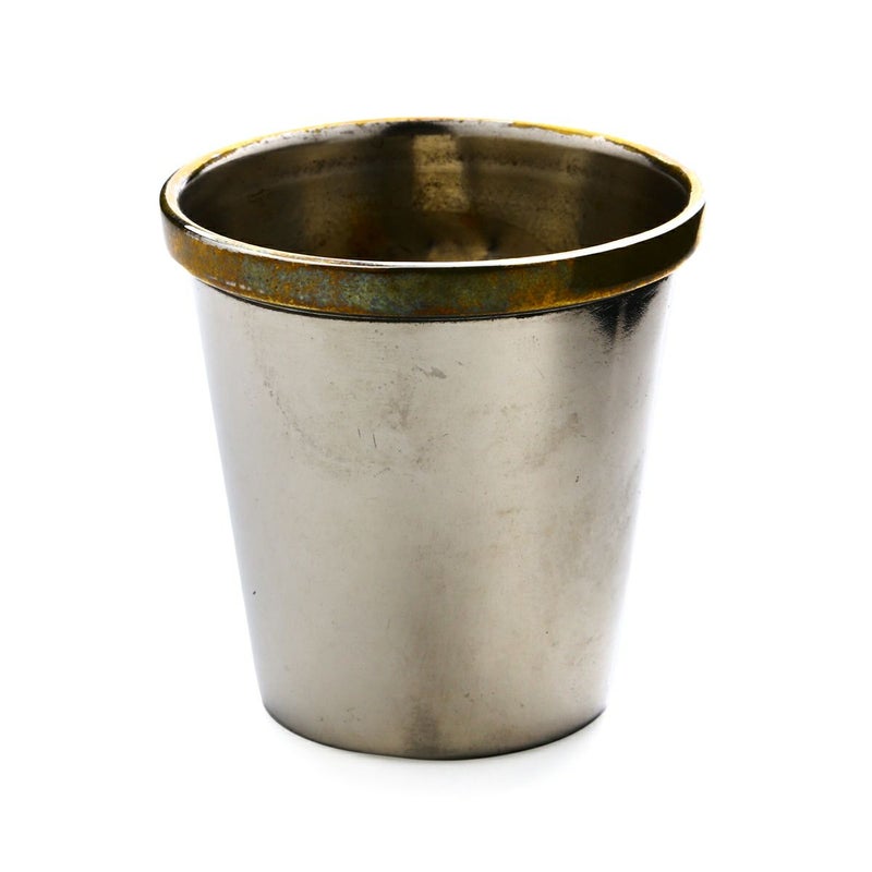 アンティークマーケットで入手したビンテージのショットグラス。スターリンギアのオリジナルパーツであるギターピックを曲線に合わせて組み合わせた世界に一つだけのショットグラス。