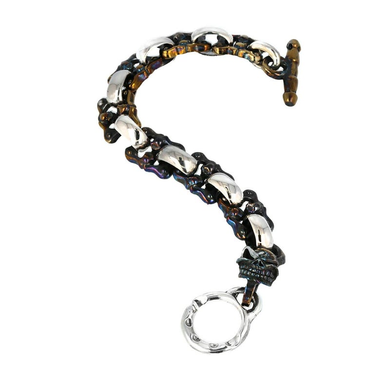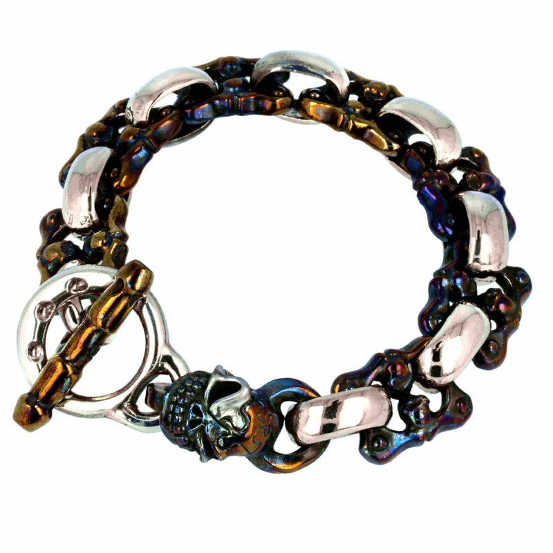 【カスタム】スターリンギア フェイシングスカルリンク/プレーンリンクブレスレット w/マイクロパズルスカル/シルバー&コバルトコンビ/コバルトゴールド